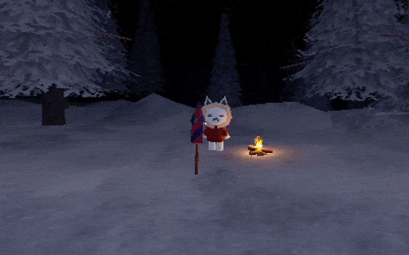 BURNING SNOW is a short atmospheric experience about staying warm in a cold forest and eventually launching a firework. Seek matches and make fire while a mysterious cat companion guides you through the forest.